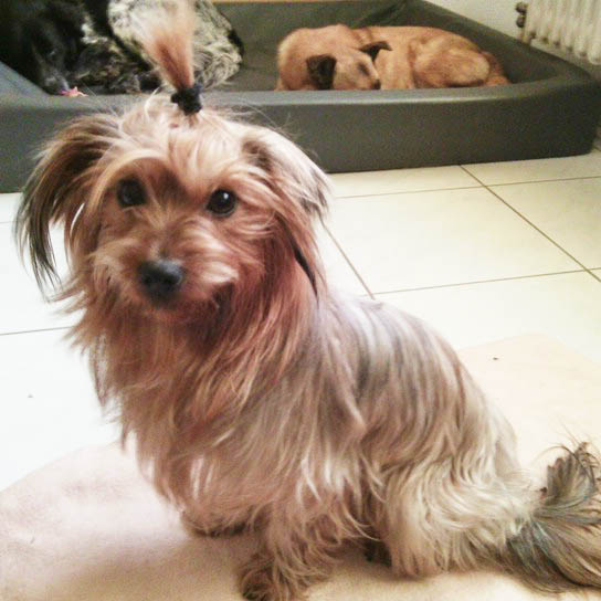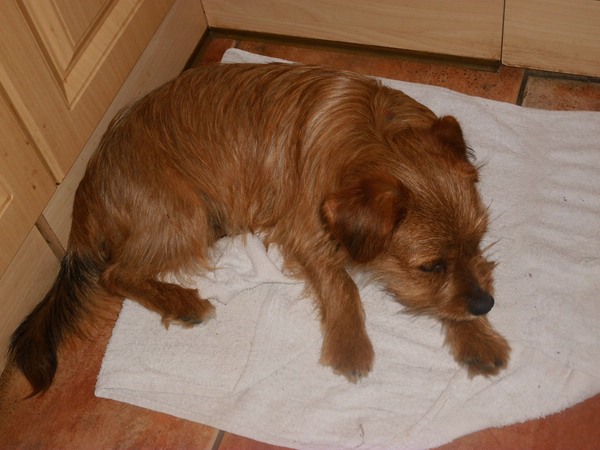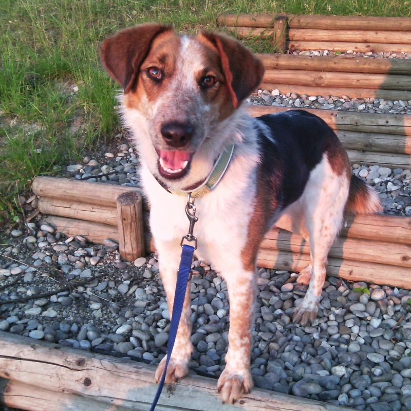 Beschreibung: ist aus gezogen und fühlt sich bei seiner neuen Familie Hundewohl.